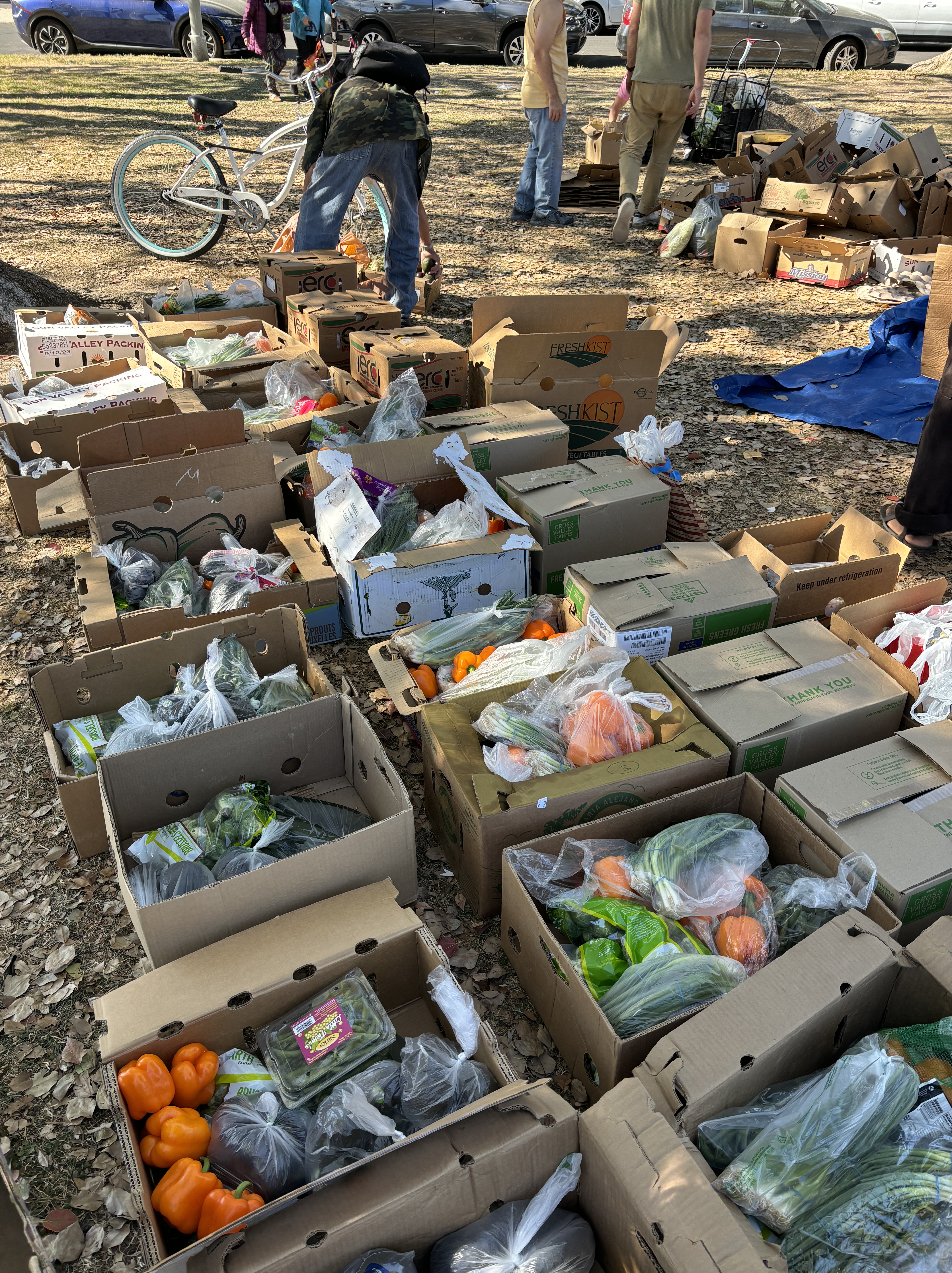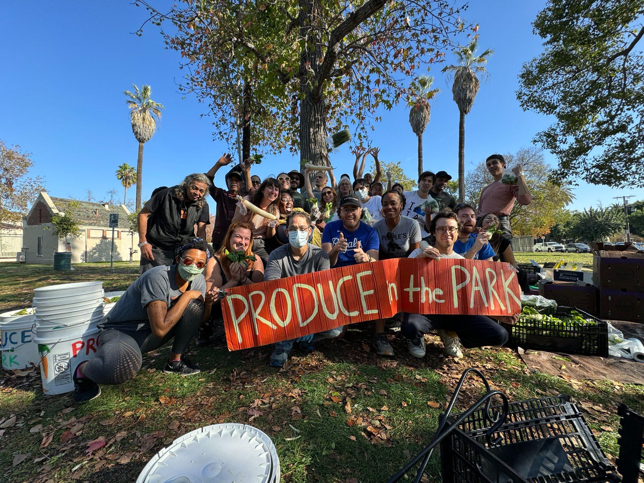 🥦Produce in the Park🌳 is a free, weekly food distribution that begins at 11:45am on THURSDAYS at St. James Park (near USC). The produce (sourced from Food Forward) is distributed to community members at the park, as well as being bagged and organized into boxes to be delivered to several LA Community Fridges and pantries. Anyone and everyone is welcome to come to the park to get produce, to help out, or even better, BOTH! We always need people to cull (sort) produce, help bag, take produce to a fridge, + a handful of other roles explained in detail below. Spanish speakers are especially needed at the park.